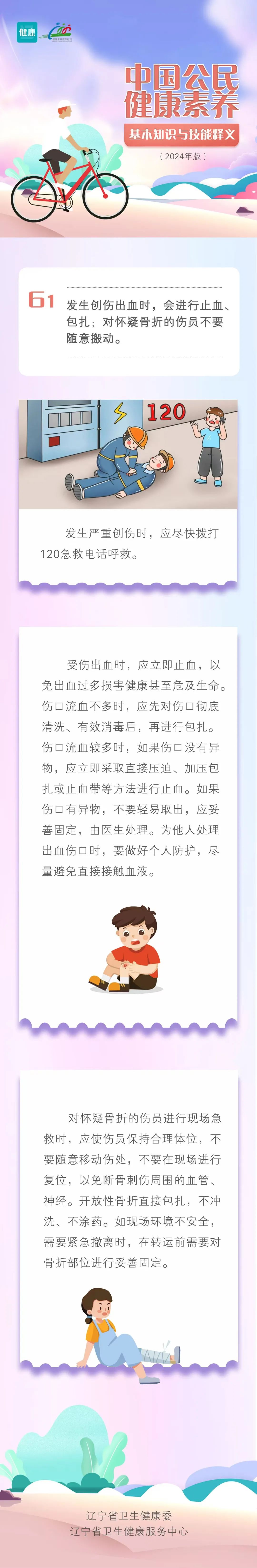 新版健康素养66条|发生创伤出血时,会进行止血、包扎;对怀疑骨折的伤员不要随意搬动