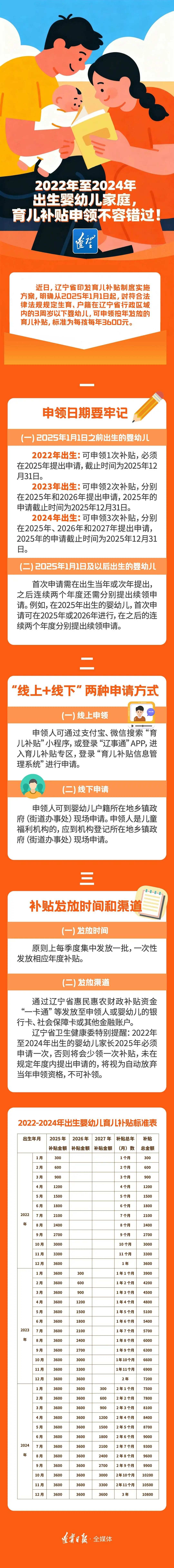 2022年至2024年出生婴幼儿家庭,育儿补贴申领别错过呀!