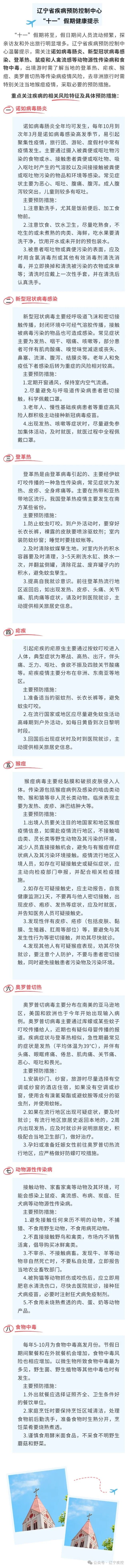 辽宁省疾病预防控制中心“十一”假期健康提示